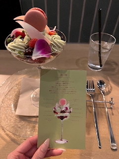 こんにちはー!ななみです🦋 普通に寒すぎませんか?! 一瞬あったかくなったと思ったらまた逆戻り、、、😖 はやくあったかくなって欲しいなあ🥹 最近できた、夜パフェのお店に友達と行ってきましたあ🙌 すごい豪華でびっくりしました👏 3種類のパフェから選べてななみは大好きなピスタチオにしちゃいました🥰 デザインも凝っていて、どこから食べるか一瞬迷っちゃいました笑笑 ちょっとリッチだけどおいしかったし、空間も素敵で大満足でした✨️ また行きたいなあ😂 今日もお待ちしてます🎶